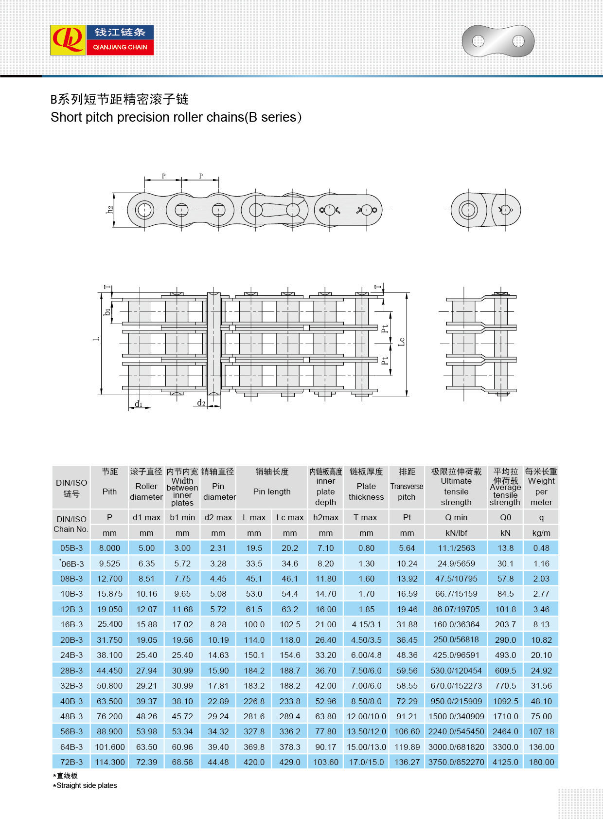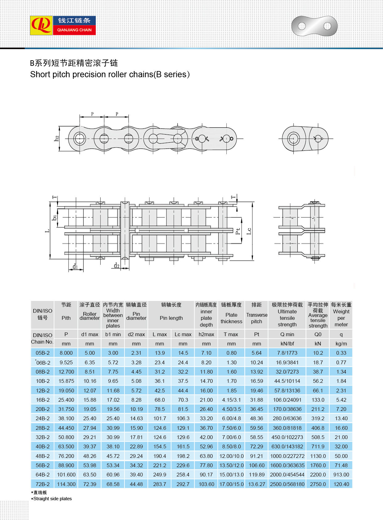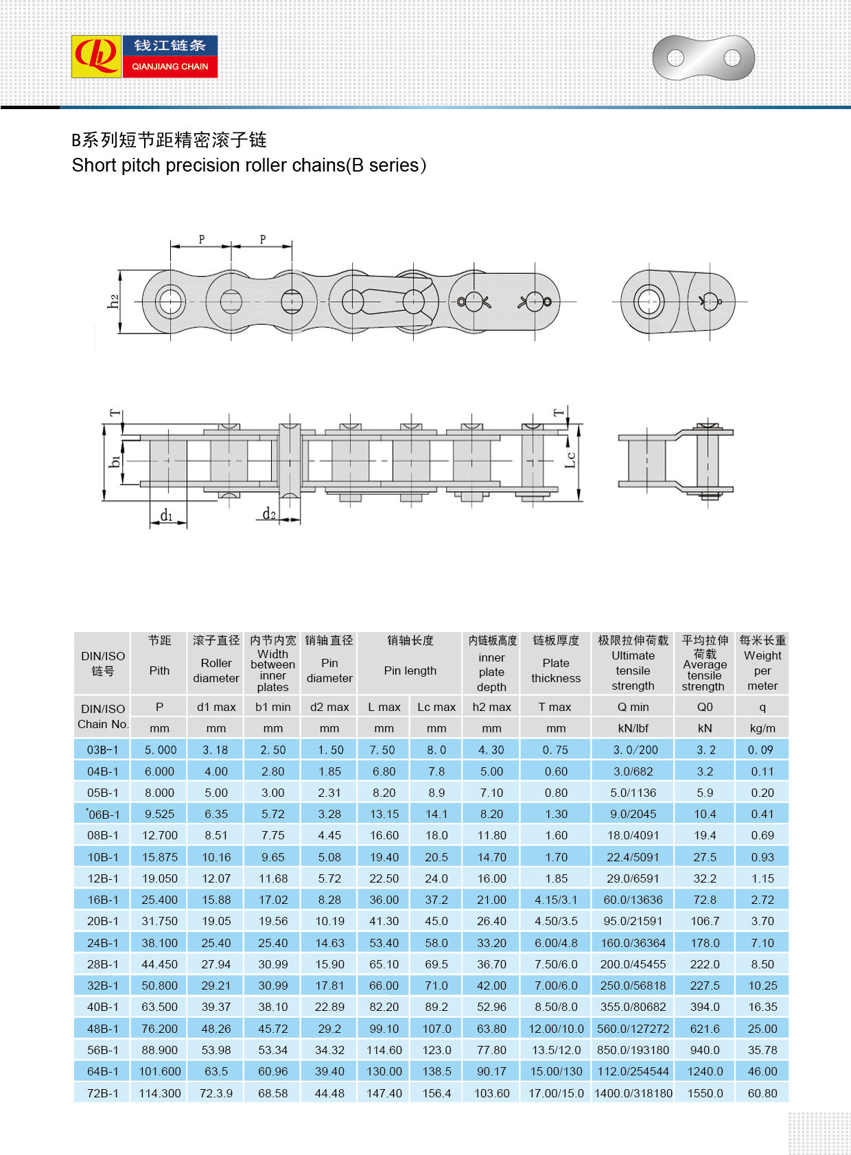 Maikling pitch precision roller chain (B series)