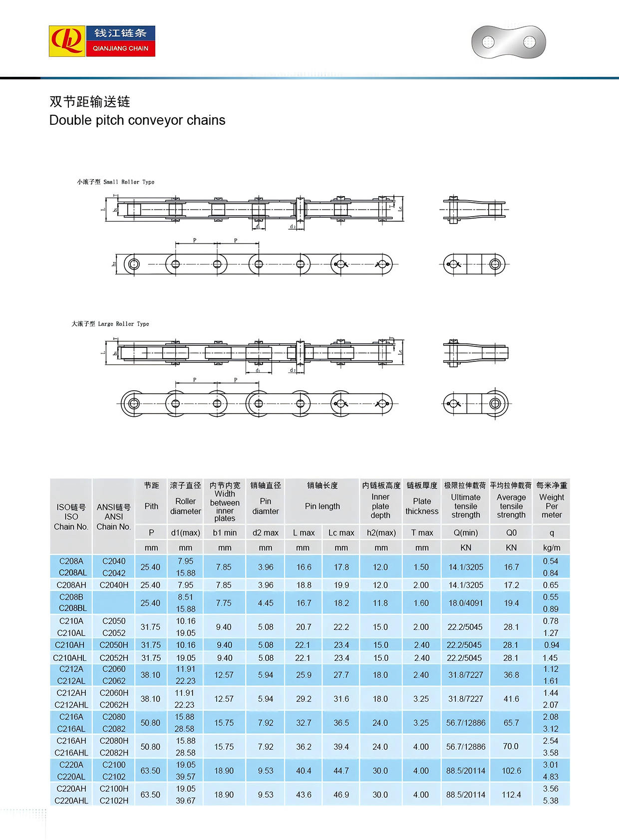Tamang-tama ang mga double pitch conveyor chain para sa magaan hanggang katamtamang tungkulin sa paghahatid ng mga gawain sa mga industriya tulad ng packaging, agrikultura, logistik, at pagproseso ng pagkain. Sinusuportahan ng kanilang istraktura ang mahusay na paggalaw ng mga kalakal sa malalayong distansya, na ginagawa itong isang ginustong pagpipilian para sa mga conveyor system na priyoridad ang makinis, mababang alitan na operasyon. Kahit na sa tuyo o kinakaing unti-unti, ang mga chain na ito ay naghahatid ng pare-pareho, maaasahang pagganap.