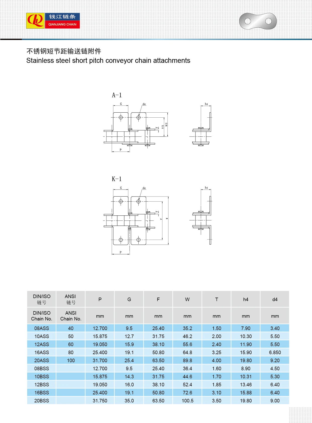 Hindi kinakalawang na asero maikling pitch conveyor chain attachment