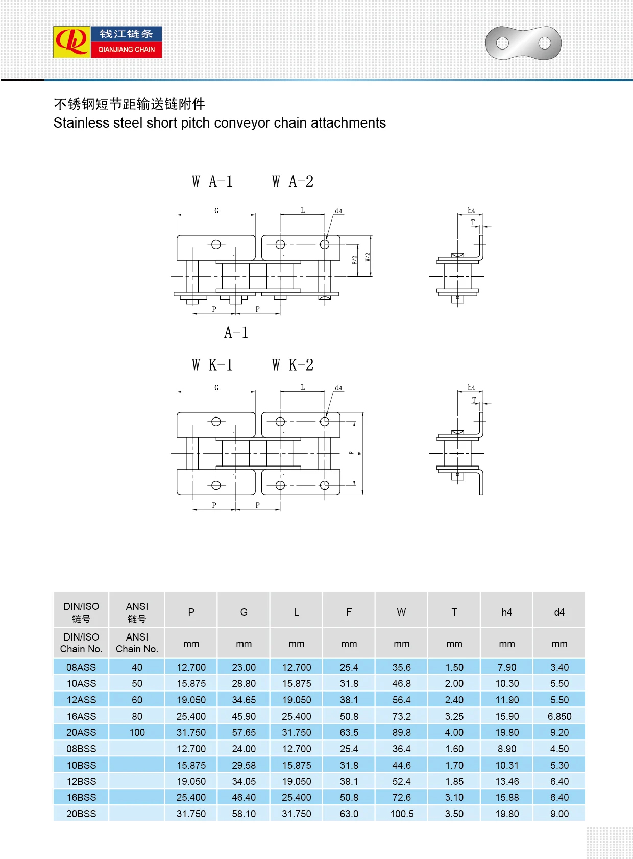 Pagdating sa mahusay na paghawak ng materyal, ang mga stainless steel short pitch conveyor chain attachment ang pinakahuling solusyon para sa mga industriyang nangangailangan ng tibay, katumpakan, at versatility. Ginawa mula sa high-grade na hindi kinakalawang na asero, ang mga attachment na ito ay nag-aalok ng pambihirang panlaban sa kaagnasan, pagkasira, at mga temperatura, na ginagawang perpekto ang mga ito para sa malupit na kapaligiran gaya ng pagpoproseso ng pagkain, paggawa ng kemikal, at mga parmasyutiko. Tinitiyak ng kanilang maikling disenyo ng pitch ang maayos na operasyon na may kaunting alitan, na binabawasan ang mga gastos sa pagpapanatili habang produktibo.